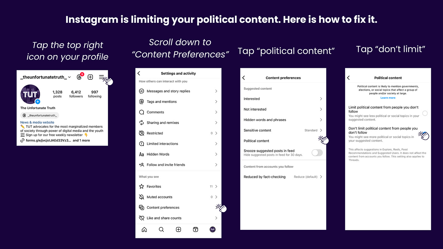 These consequences hit home for us at TUT as a social media-based outlet. Despite creating reliable, fact-checked news, our content from the war on Gaza is severely limited in its reach. This is why creating this newsletter is so important. It allows us to keep our content free from the bonds of algorithms and get you stories that matter.