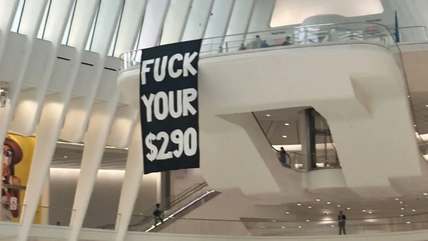 The New York Police Department is under fire from New Yorkers after officers shot three bystanders and one of their own officers while pursuing a knife-wielding man for not paying his $2.90 subway fee, which was "crowded," per a witness.